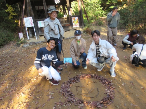 急(きゅう)な山道(やまみち)を登(のぼ)るのは大変(たいへん)でしたが、声(こえ)を掛(か)け合(あ)い、力(ちから)を合(あ)わせて、頂上(ちょうじょう)までたどり着(つ)くことができました。