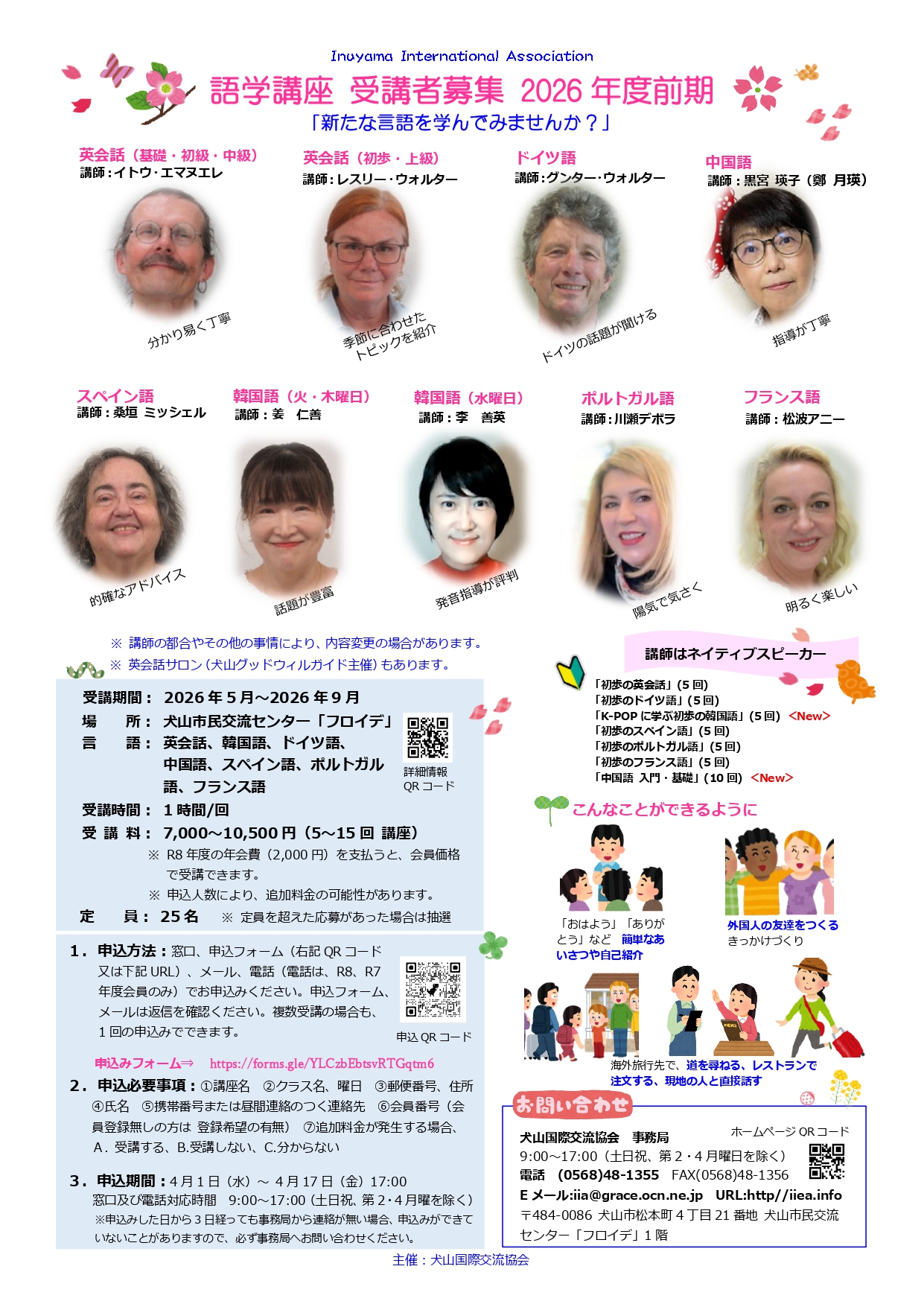 2026年度 前期語学講座/英会話サロンのご案内